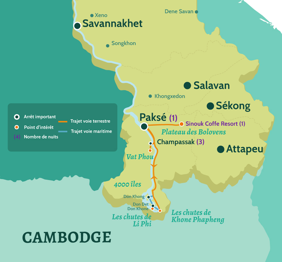 Au départ de Paksé, ce petit programme inscrit tous les centres d’intérêt culturel et naturel du sud-Laos dans le patrimoine du pays.